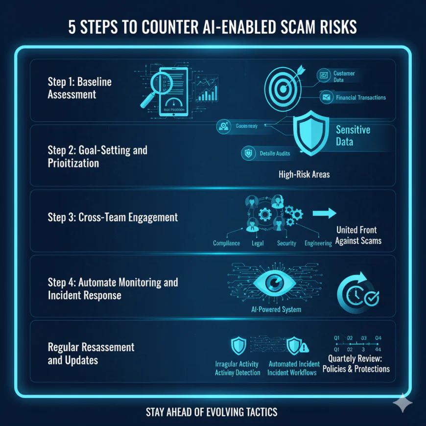 Step 3: Cross-Team Engagement Lift the barriers—make sure compliance, legal, security, and engineering staff are always in touch about scam risks and the measures taken to counteract them.