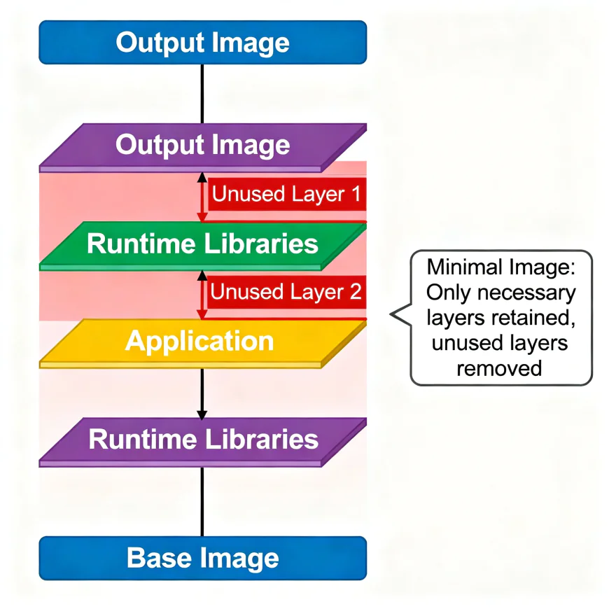 A minimal container image includes only what’s absolutely necessary for your application to run — nothing more.