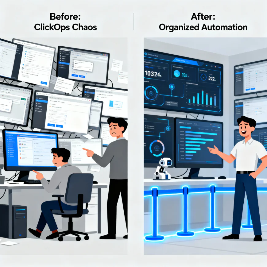 That’s ClickOps — the habit of manually configuring cloud resources through UI clicks instead of version-controlled automation.