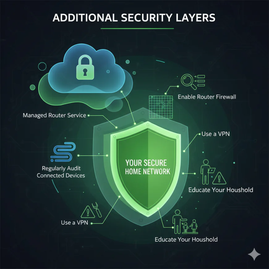 Consider a Managed Router Service: There are a few Internet Service Providers and third-party service providers that offer managed router services whereby security patches are automatically applied, and suspicious activity is monitored. This way, a user has to place their trust in an external service provider, but on the bright side, the security management is offloaded.
