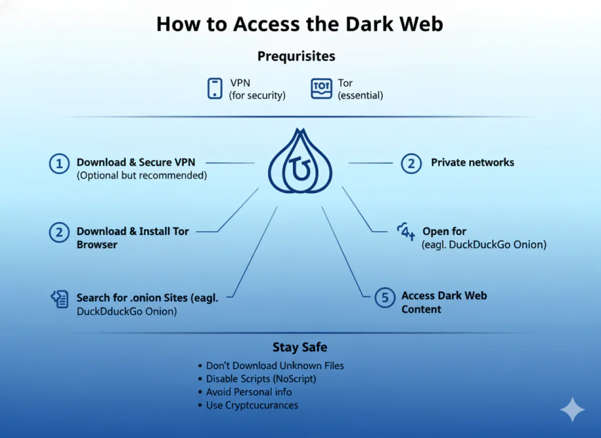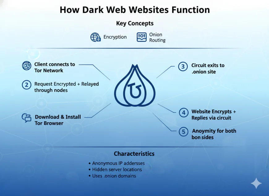 The dark web requires a special software, it typically requires the users to download the Tor browser. It allows people to connect to dark web sites ending in the .onion domain. .Onion domain offers anonymity by routing the connection through several encrypted nodes, making user activity virtually untraceable. Navigation is challenging inside the dark web, though many dark web links are unreliable or short-lived, search engines such as Grams or directories like The Hidden Wiki help users find what they’re looking for.